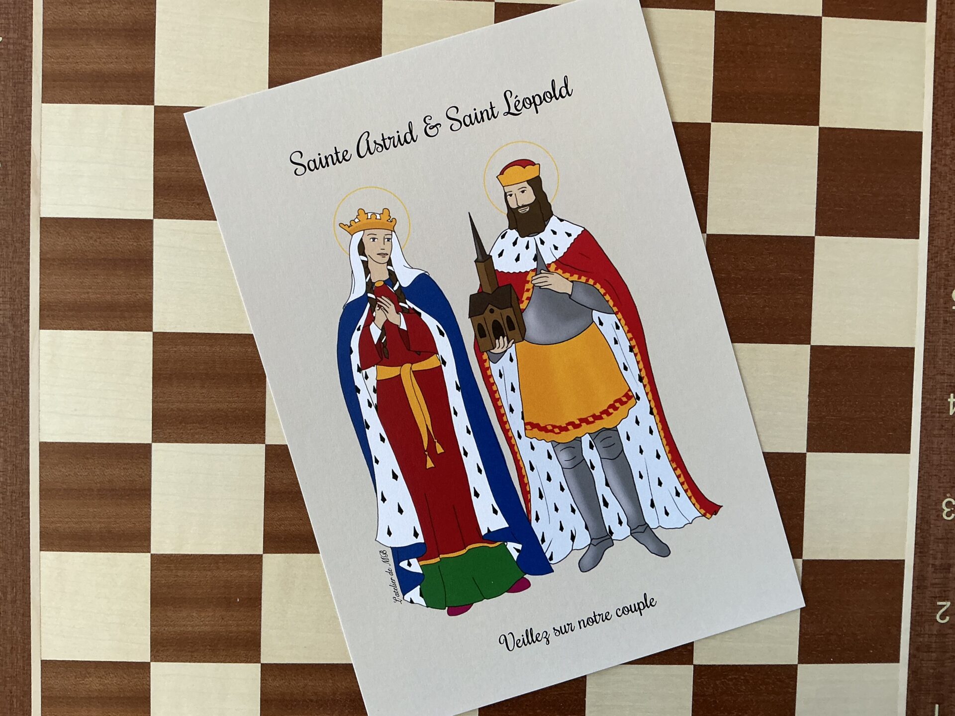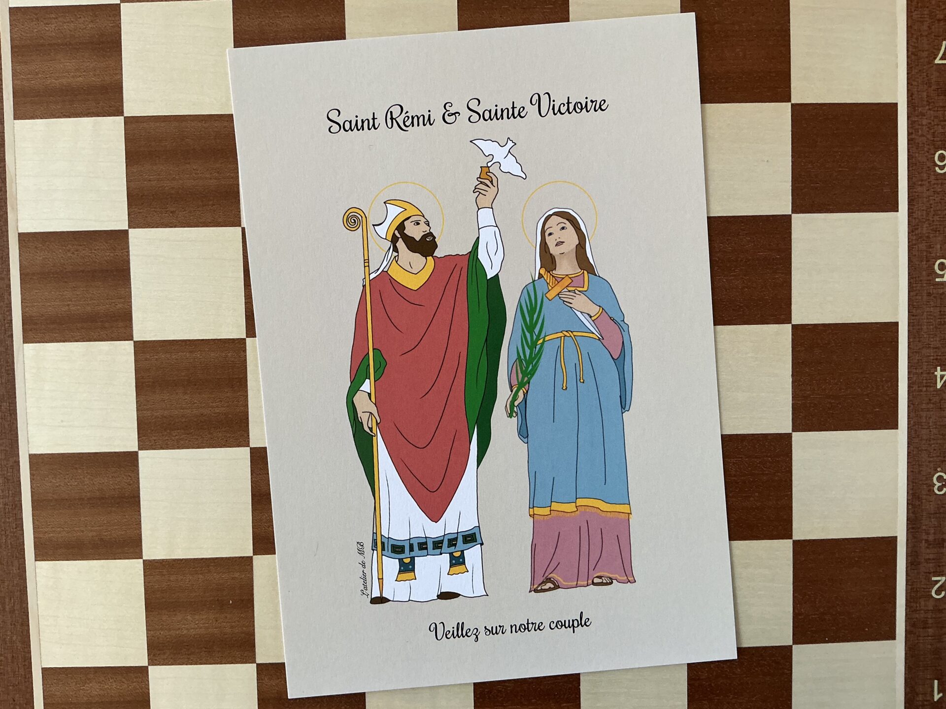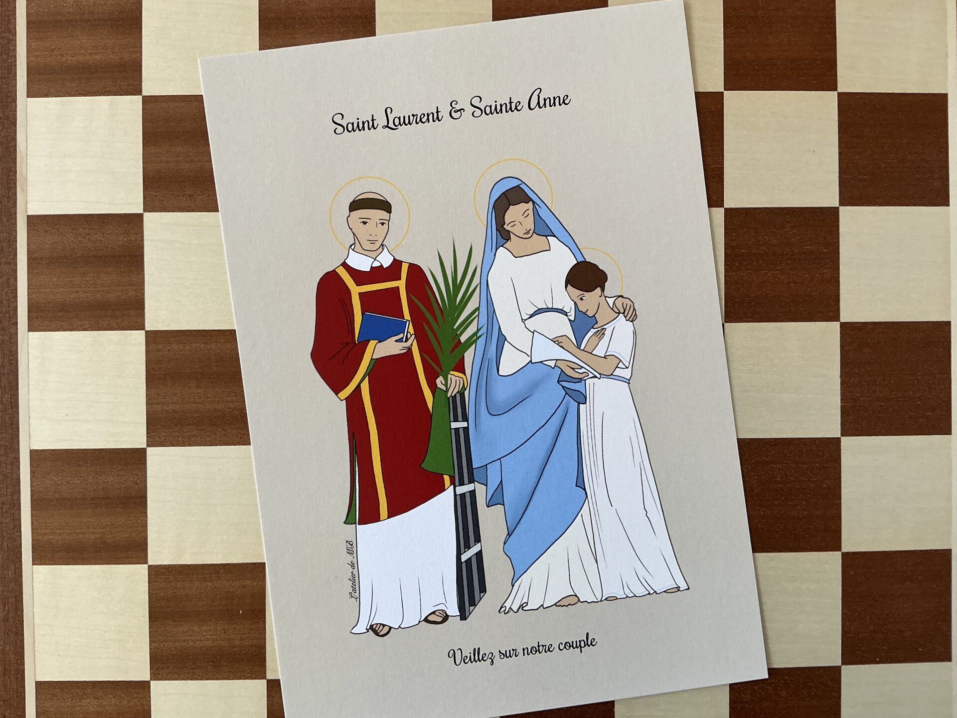 Illustration Au format A4 avec les saints de votre couple. Imprimée sur du papier 300g.