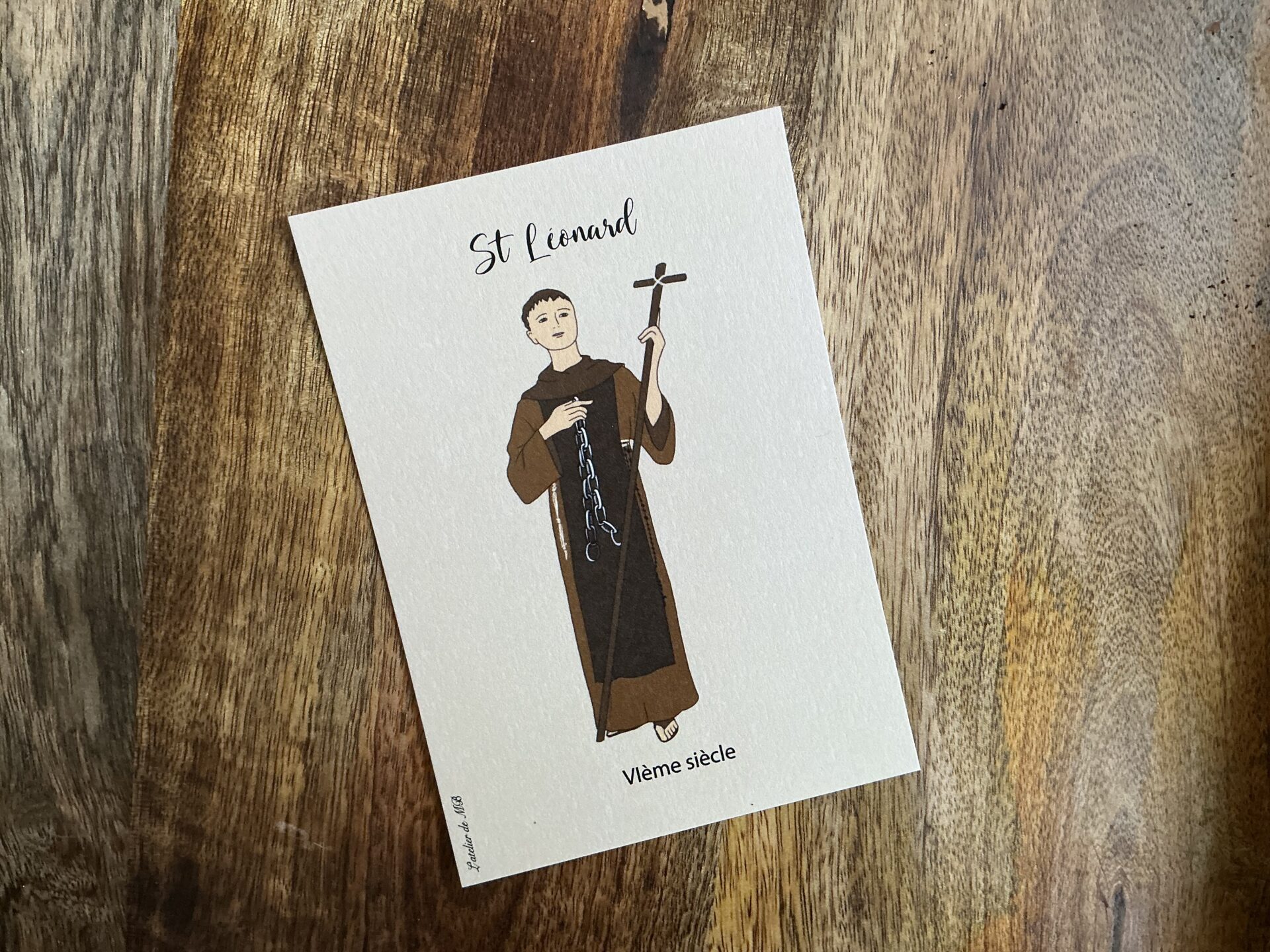 Carte de saint Léonard, fêté le 6 novembre. Elle est imprimée au format A6 sur papier 300g