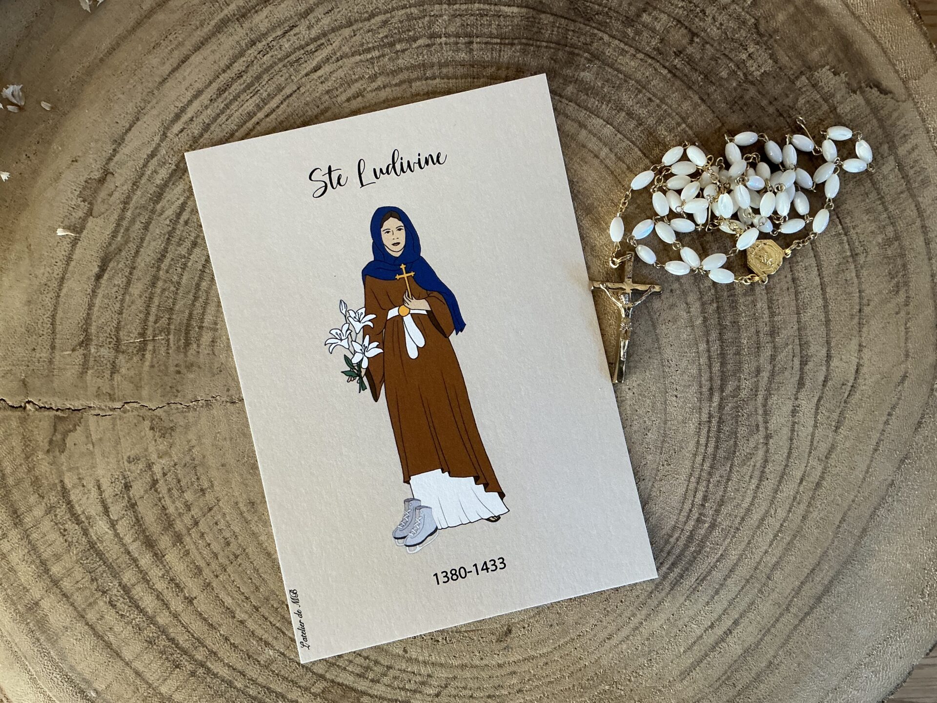 Carte de sainte Lidwine, ou Ludivine, de Schiedam, fêtée le 14 Avril.