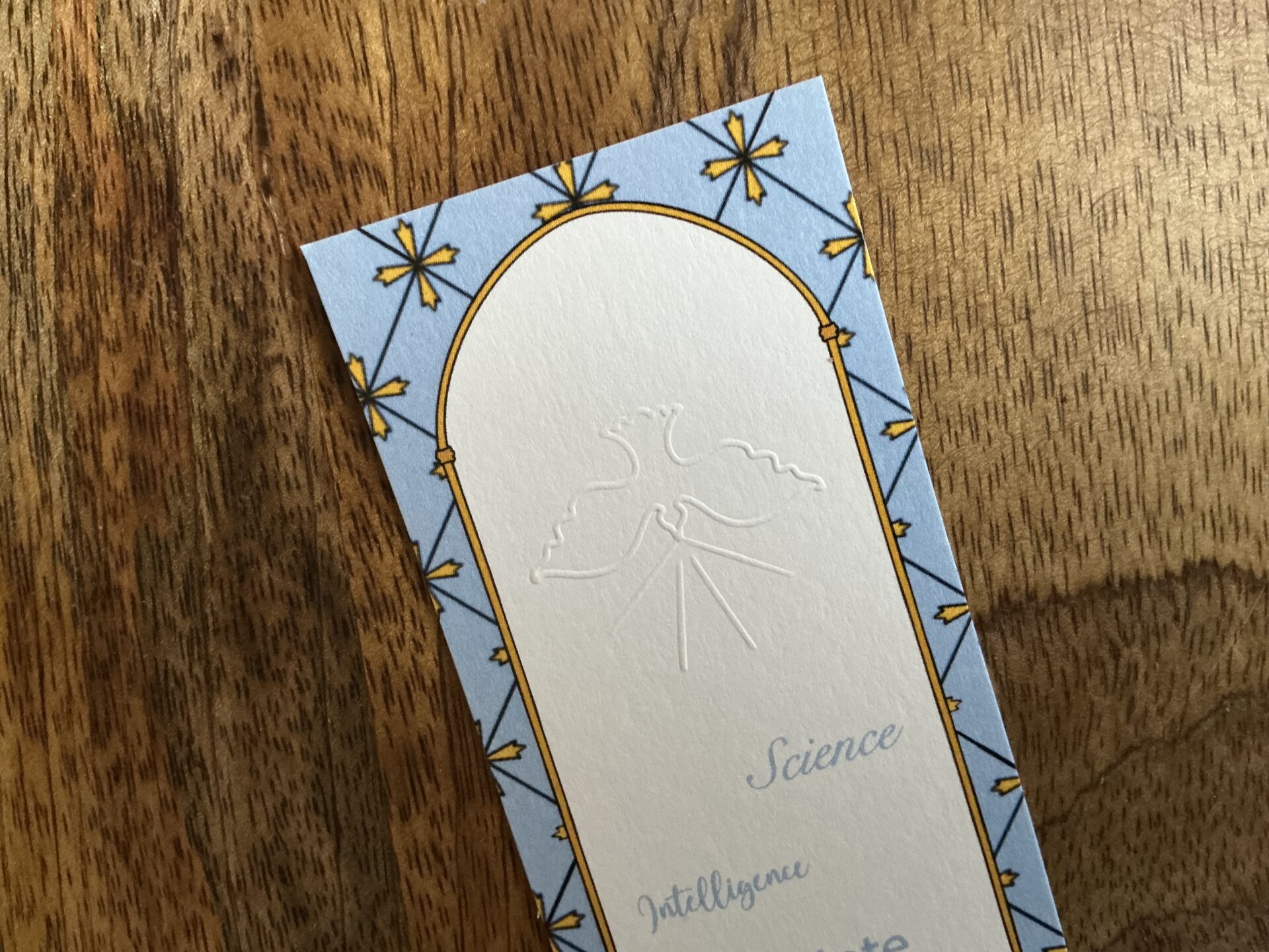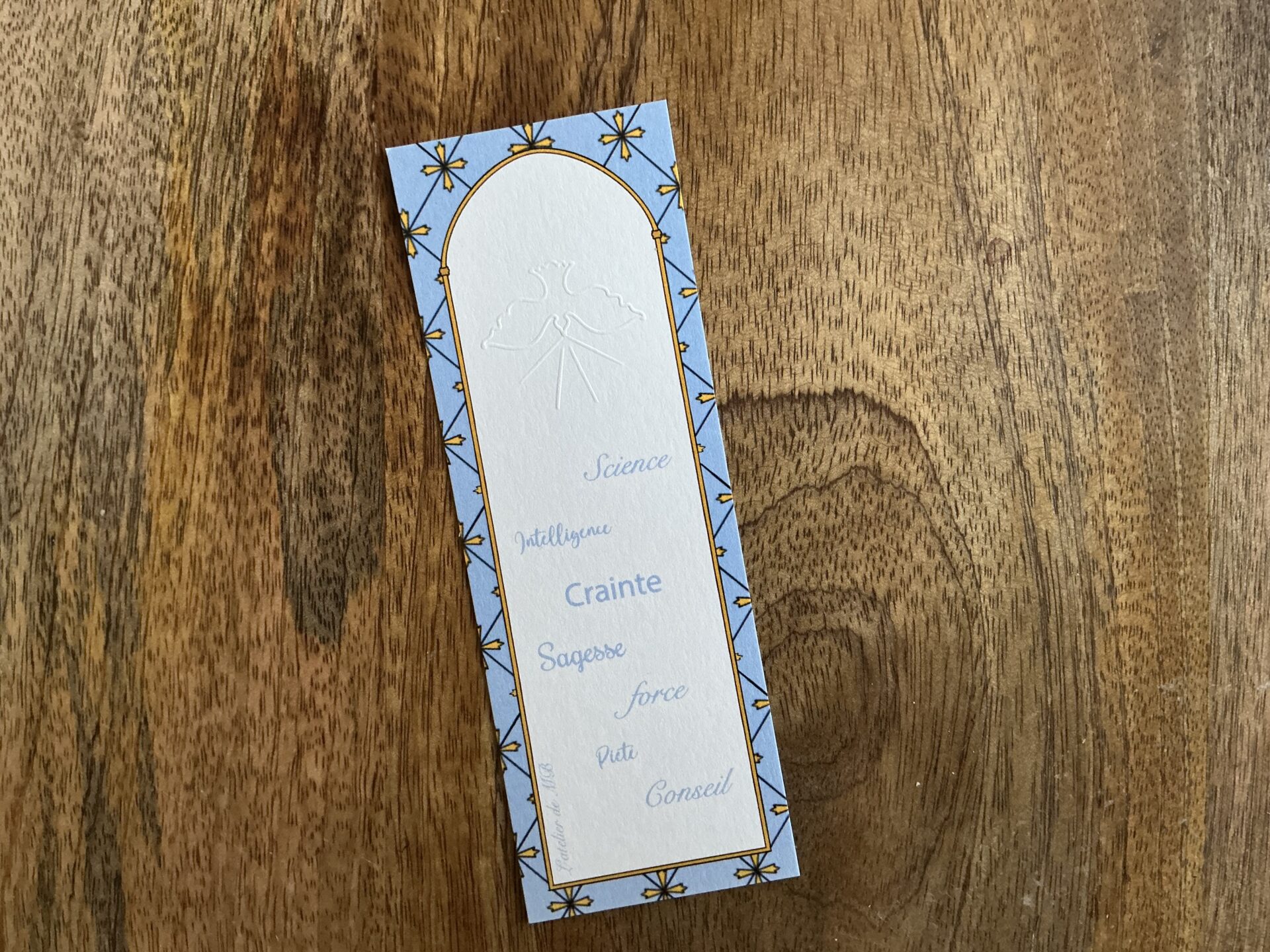 Signet avec les 7 dons de l’esprit saint et une colombe en gaufrage.