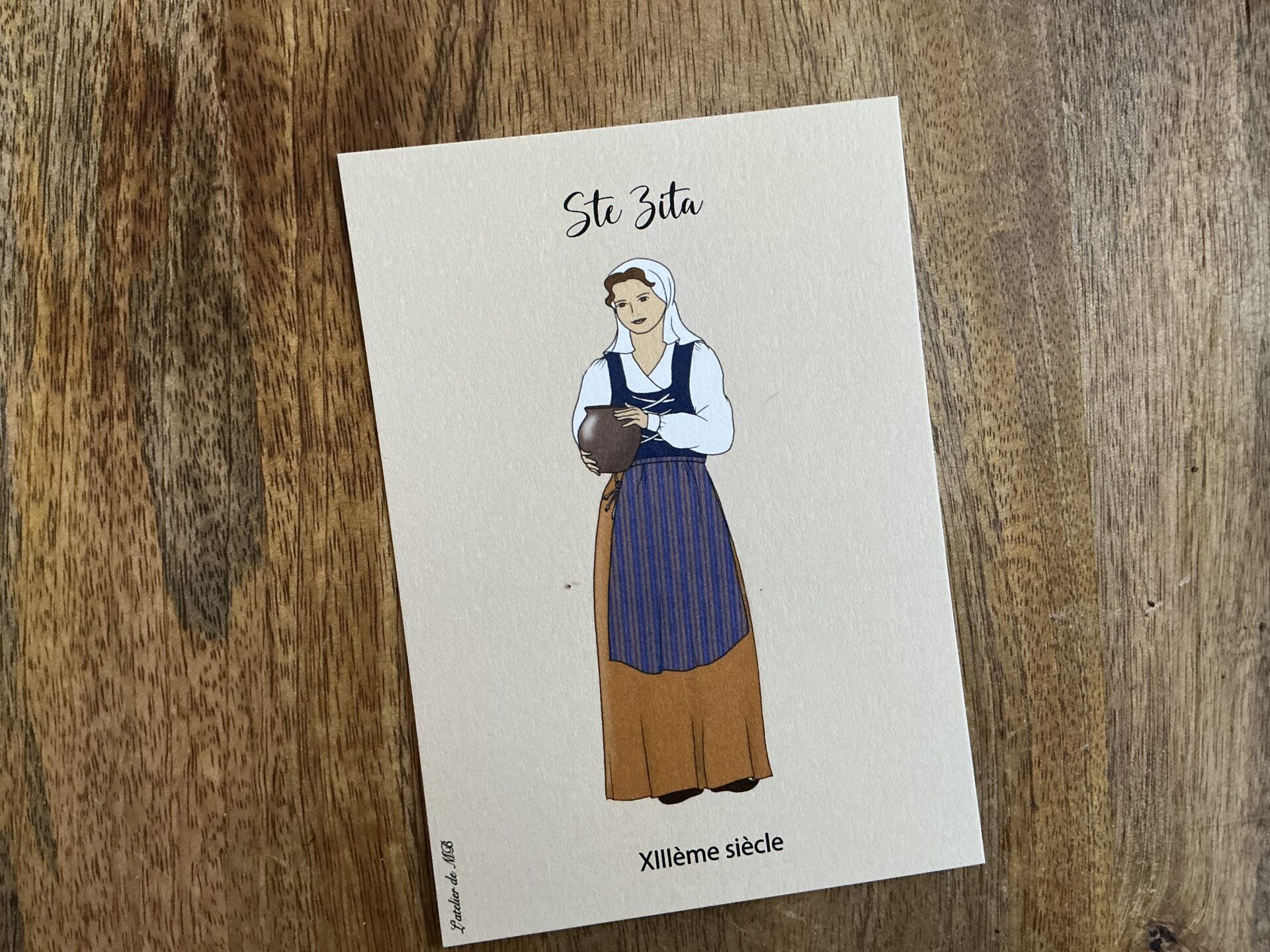 Carte de sainte Zita, patronne des employées de maison, fêtée le 27 Avril.